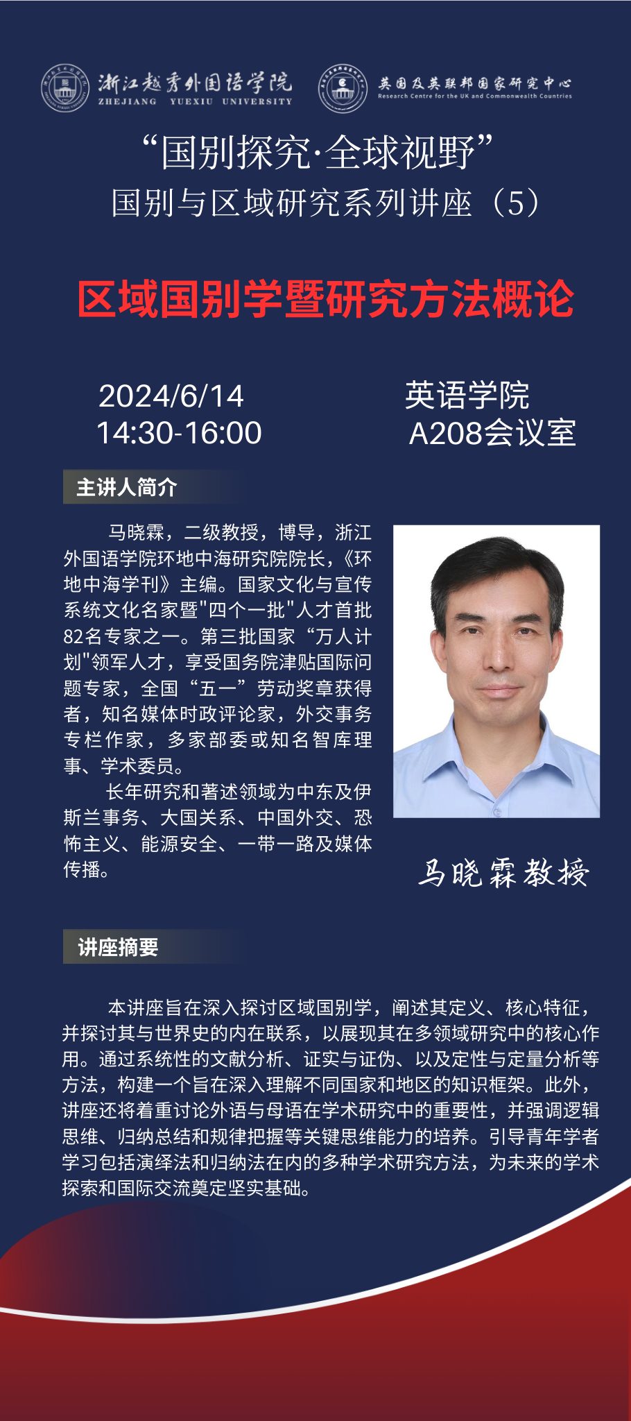 6月14日下午,opta足球数据中文版邀请浙江外国语学院环地中海研究院院长、《环地中海学刊》主编马晓霖教授为师生开展题为“区域国别学暨研究方法概论”的讲座。本次讲座为英国及英联邦国家研究中心系列讲座的第五场。