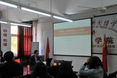 ( 图4:天津大学外国语学院项成东教授在开展讲座)