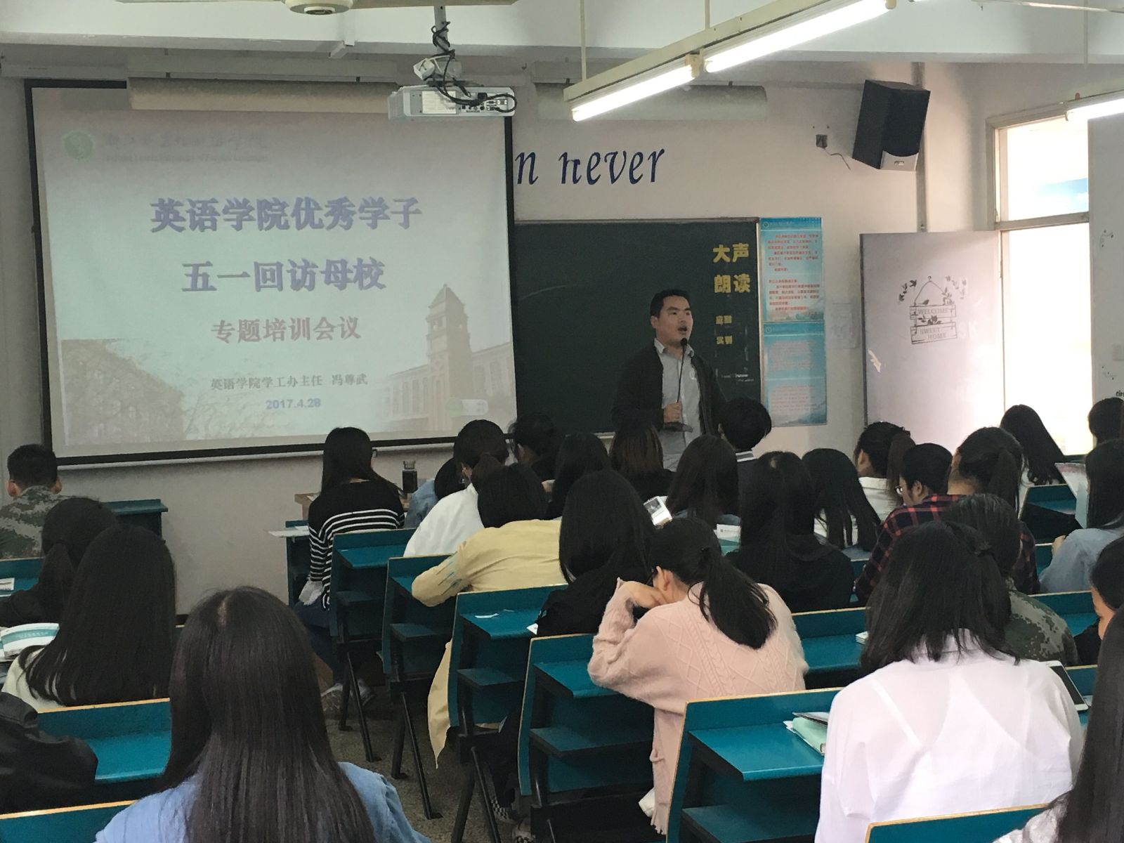 冯老师由学生党员的发展、为何入党、如何成为一名合格的党员等角度入手,先给全体同学上了一段思想教育课,强调活动的纪律性,提高同学们的责任感。紧接着他开始讲解学校的基本情况、相关专业、学校的特色、高考改革新政策、回访活动要求等。要求同学们回访母校要有礼有节,符合大学生形象;回访期间安全第一,不乘坐黑车等非正规车辆,可约上高中同学结伴而行;争取能跟学弟学妹做面对面的交流,分享大学期间的感悟及专业学习。