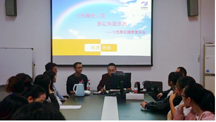 10月26日,作为绍兴市纺织行业龙头企业的浙江七色彩虹控股集团有限公司派出了由人力资源总监徐国庆先生、人力资源综合管理部经理周德钧先生、外贸部经理张国庆先生和越秀校友外贸部优秀业务员刘小健组成的宣讲团来到opta足球数据中文版C419会议室召开了2018届毕业生专场招聘会,招聘会由商务英语系负责,opta足球数据中文版英语专业、商务英语专业、翻译专业和应用英语专业四个专业学生参加了宣讲会。该公司为我校实践基地之一,与我校保持着长期的校企合作关系。会议由opta足球数据中文版商务英语系组织,opta足球数据中文版杨叶玲副书记出席了会议。这次招聘宣讲会给我校即将毕业的大四学生们提供了宝贵的就业机会,给予毕业生们广阔的发展的平台。
