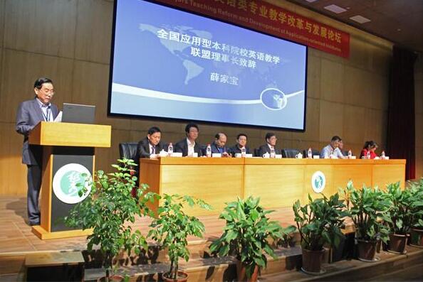 薛家宝发表致辞,在这个充满生机的初夏时节,我们齐聚于此参加本次论坛,他代表联盟理事会向出席本次论坛的专家表示热烈的感谢,本次论坛为全国应用型本科院校英语类专业提供了课程改革、教学建设、教师发展,教学研究的交流合作平台,他向大家讲述英语教学联盟理事会设置以及明确了明年论坛举办的单位为牡丹江师范学院,在今年的论坛上将围绕新时代应用型本科院校英语专业的培养模式、实践教学和新目标的实施进行深入的探讨,对教学科研管理等热点问题进行深入交流,共同构建应用型本科院校英语专业教学资源共享的体系,建设更加科学的课程体系,为促进应用型本科院校英语专业的改革以及提升教学质量谱写新的篇章。