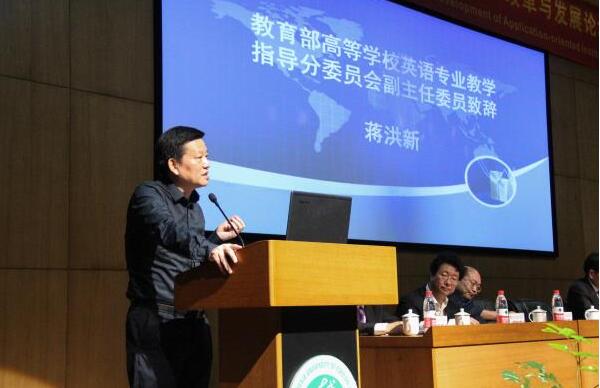 蒋洪新发表讲话,首先他代表英语教指委对本次大会的召开和各位的莅临表示热烈的欢迎和祝贺,同时也代表在座的的各位对外研社以及我校的招待表示衷心的感谢。在这个最美的时节,我们齐聚于此,共同探讨此次论坛,借此机会,他提出三个共鸣,第一个共鸣是我们一定要志存高远,无论是什么类型的院校都要承担起为国家分忧解难的责任,第二个共鸣是我们要探讨如何深化改革,如何适应时代发展的问题,第三点是我们要学习到如何才能协同共济这一问题,他谈到无论是什么院校,只要团结一起,通过这个联盟,一定能把学科建设好,最后预祝本次论坛圆满举行,也欢迎在座嘉宾来湖南师范大学参观指导。