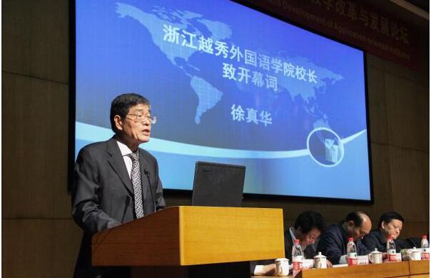 徐真华致开幕词,首先他向出席本次论坛的领导专家表示诚挚的欢迎以及对论坛的顺利召开表示热烈的祝贺。他讲到今年二月教育部增设颁发了普通高校本科专业类教育质量国家标准,这是我国发布的第一个高等教育教学质量国家标准,该标准体现了三大基本原则,一是突出了以学生为中心,二是突出了以产出为导向,三是突出了持续改进的理念,在这样的背景下,我们召开此次论坛围绕新时代应用型本科院校英语类专业培养规格、课程设置、教学模式、实际持续、教学条件、师资队伍、质量保证等,以及国标实施,校标制定等话题进入深入思考。紧接着徐真华向出席嘉宾介绍我校概况,希望在座的各位领导和专家学者在本次论坛上就应用型英语类人才培养的方方面面畅所欲言,贡献智慧,同时希望各位专家学者在今后能够继续关心帮助我校英语专业的建设和发展,最后祝本次论坛能够取得圆满成功。