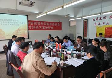 随后,英语系主任章岚老师汇报了学前教育专业人才培养方案制订进展情况,重点介绍了培养目标、培养规格、课程体系及各学期的学分、学时分配。