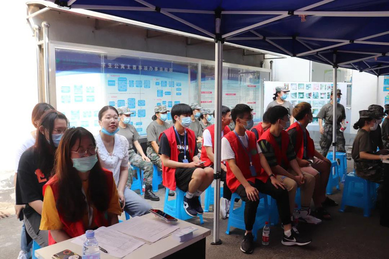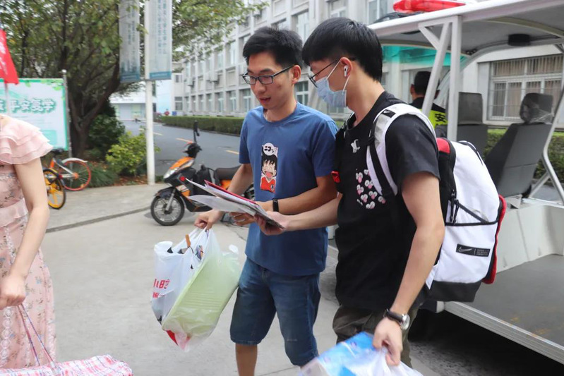 这些穿着红马甲的同学,是我们最可爱的迎新志愿者们:报道点、行李寄存处、宿舍楼下……随处可见他们忙碌的身影,为了帮助新生完成报道流程,有的人甚至来不及吃饭......