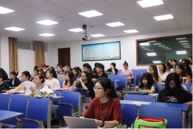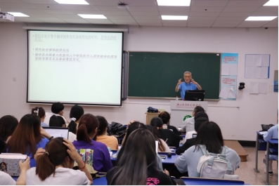 最后,何教授向同学们讲述了本讲座的核心内容“译写”,意为在不改变原文核心主旨,充分尊重原文主要思想的基础上,将原文内容以目标语受众最可也最易接受的语言及其他表现形式来呈现。目前,我国对于译写的教材编写也较空白,这是我们仍需加强的地方!