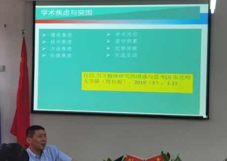 接着,傅教授提到了学术研究区分特征与翻译研究的选题要求,在选题要求中提出四个意识,分别是问题意识、创新意识、学科意识与服务意识。傅敬民教授认为任何翻译都是发生于特定社会的翻译,不可能脱离特定的社会语境,并且服务于特定社会。翻译的社会性要求翻译具有社会担当和现实关怀。因此,翻译必须具有强烈的问题意识,责任意识和服务意识其中涉及的问题不仅包含翻译内容,还涉及翻译策略的运用。在当下我国文化走出去讲好中国故事的语境中,翻译应该自觉地担负起应有的责任,在翻译人才培养、翻译理论研究等方面加强服务国家发展战略意识及服务国际传播意识,明确翻译立场,切实有效地推进一流翻译专业建设。