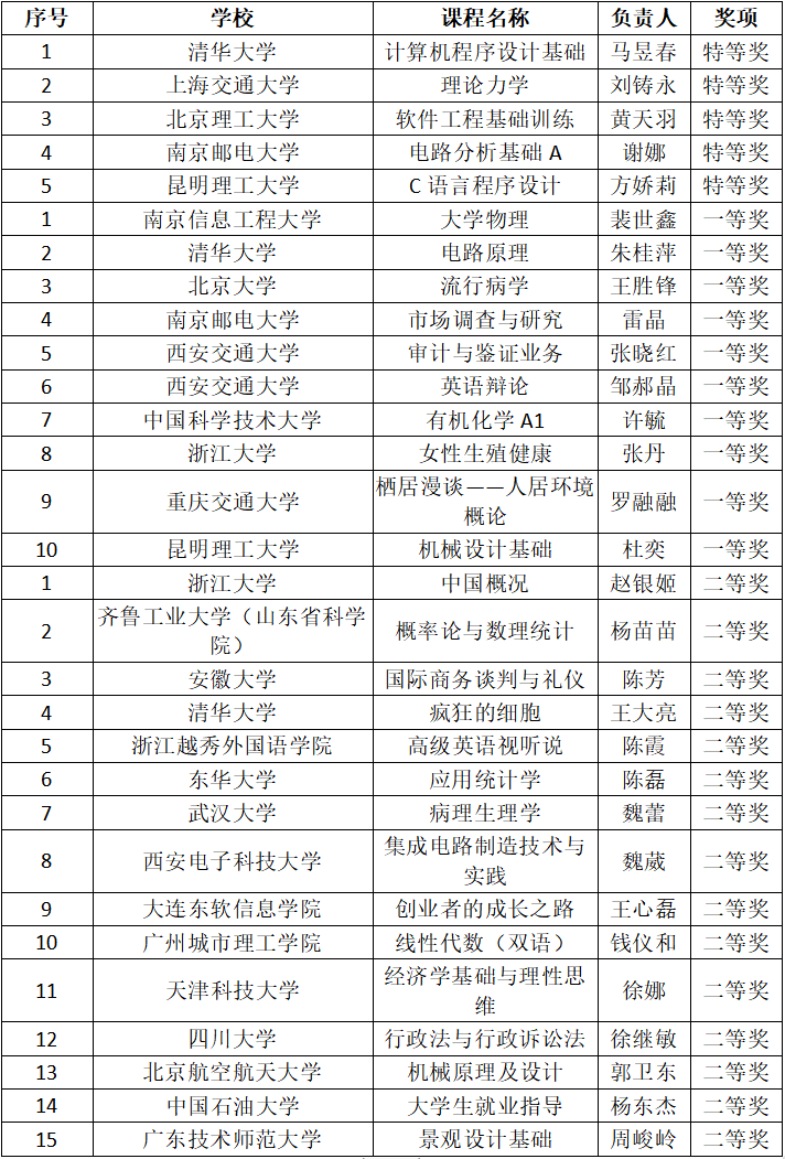 全国高校混合式教学设计创新大赛决赛获奖名单