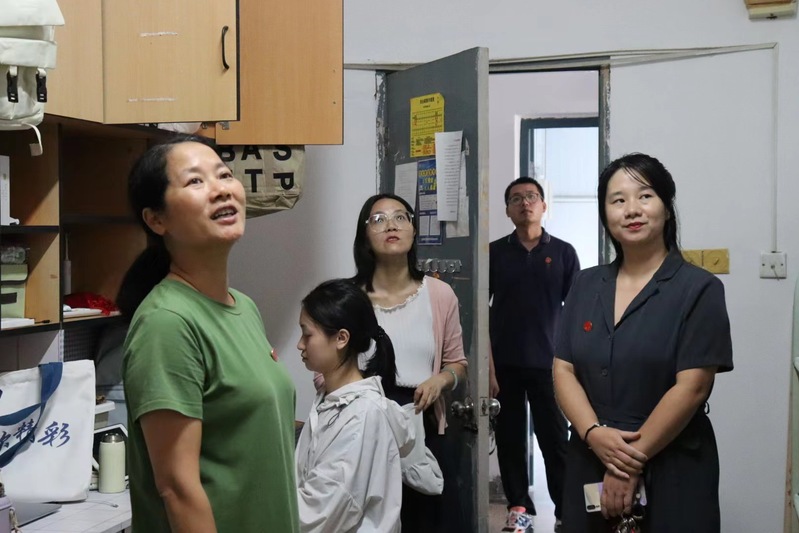 走访过程中李敏书记亲切地和学生交谈,鼓励新生走进大学要学会独立,不断成长;同时对用电安全、节水节能、防范网络电信诈骗等做了提醒。