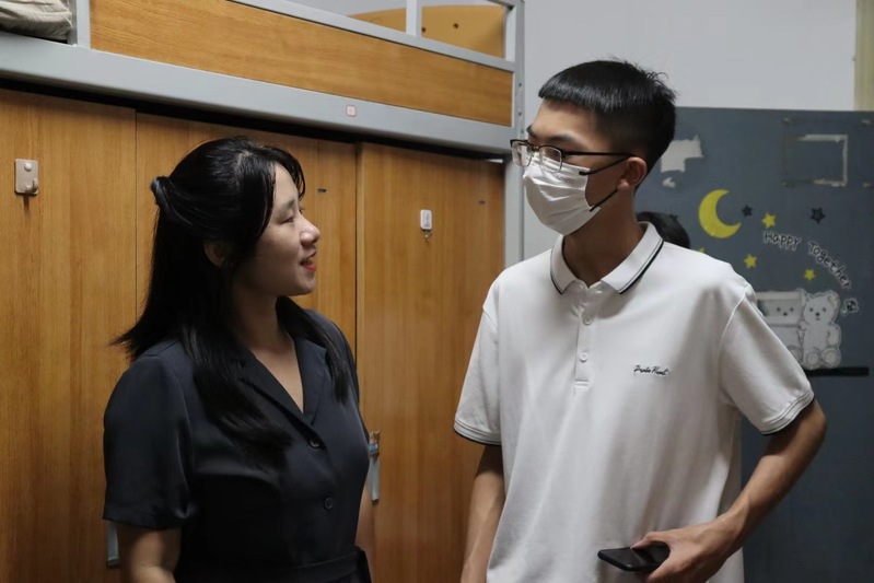 9月11日,2022级新生报到第一天,opta官网350余名新生来校报到,并顺利入住学生公寓。下午3:30,opta官网党委书记李敏带队,携副院长张玉宏、副院长谌莉、党委副书记俞科安、院办主任华晓霞、学工办副主任张金媛及2022级新生辅导员一行8人走访17幢、18幢、19幢、24幢新生寝室,慰问初入大学的英语学子。