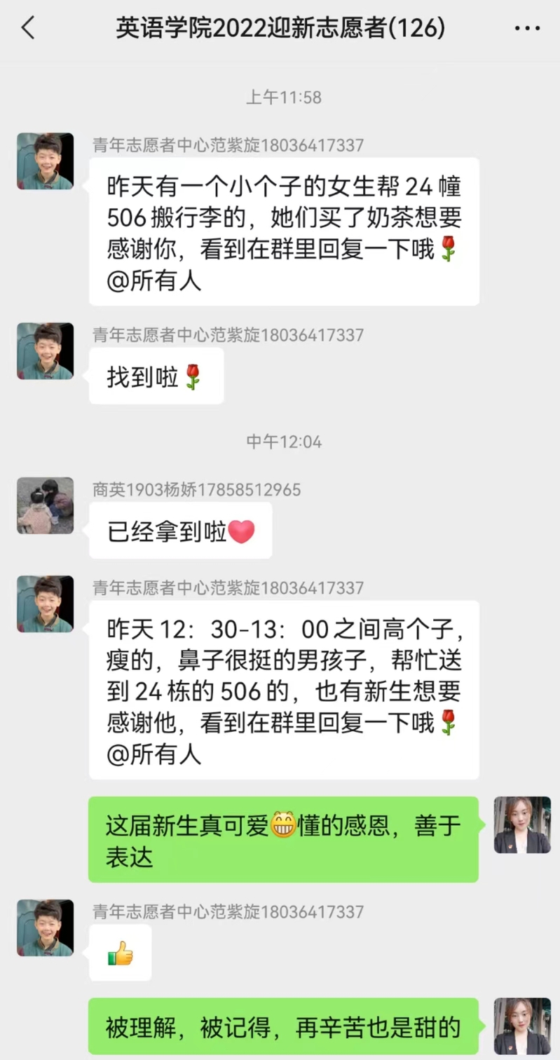 这是迎新志愿者与新生双向奔赴的感动瞬间。被理解,被记得,再辛苦心里也是甜的。