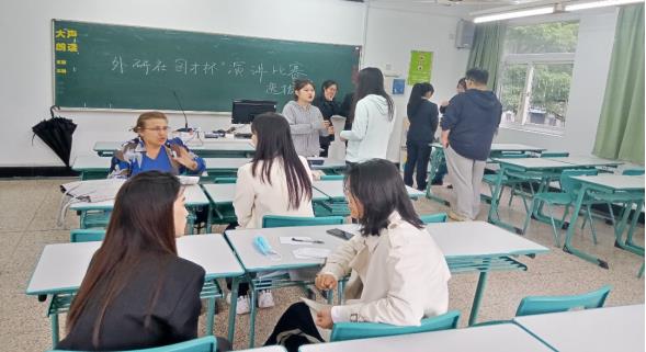 大赛的最后一项是师生交流。关于演讲主题中的中国智慧到底是什么,师生们也进行了更为深入的探究。交流中,有选手认为中国智慧的核心是合作精神,并借此阐述了自己的看法;又有选手指出,合作精神也同样体现在别国智慧中,并不为中国所独有。探讨环节现场氛围活泼而热烈,体现了当代大学生的担当和责任感,不仅专注专业知识学习,同时也关心时事与国家的发展。