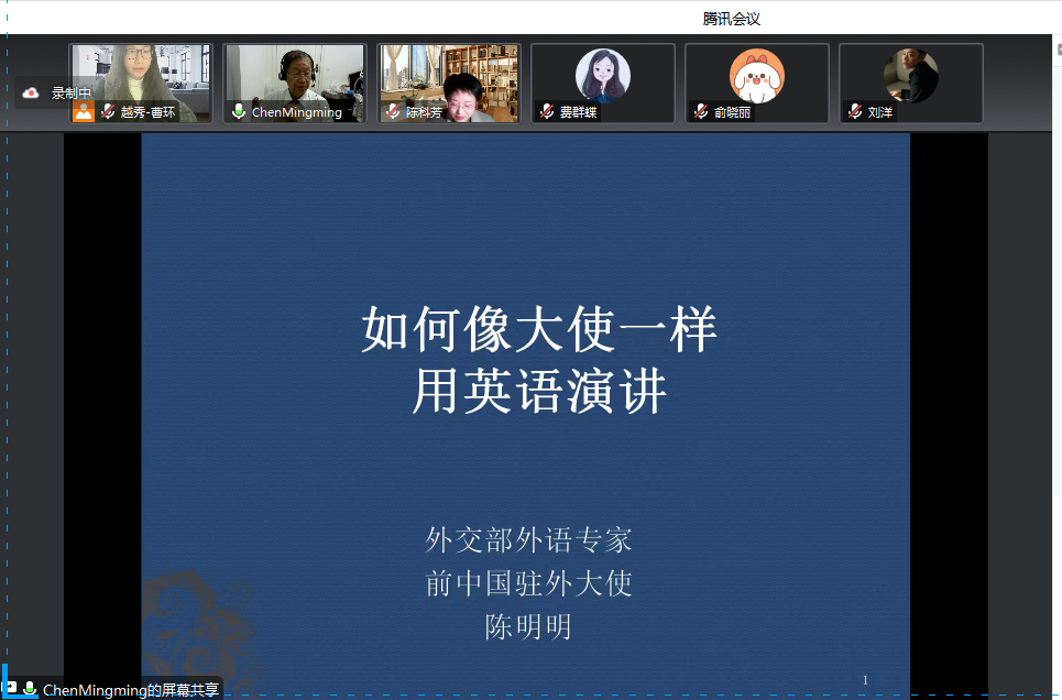 2023年2月21日下午,学校教师发展中心、opta足球数据中文版、多语种翻译与国际传播研究中心共同组织腾讯线上会议,邀请外交部外语专家、全国翻译资格考试专家委员会副主任委员、全国翻译系列高级职称评委会副主任委员陈明明大使开展了“如何像中国大使一样用英语演讲”的主题讲座。讲座持续近两个小时,在线参会师生300余人,反响热烈。讲座由教师发展中心主任费群蝶主持。
