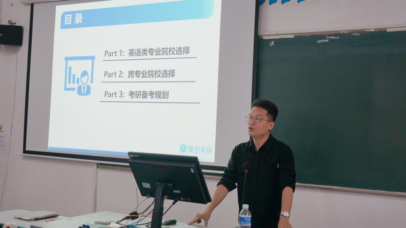 最后,聚创考研导师详细介绍了近年考研现状、各大高校录取比例,从学校梯度、专业维度、考试难度等方面指导同学们如何选择院校和专业,并对备考环节、应试技巧等问题给予解答,提醒同学们要尽早明确自己的考研意愿与目标,进而迎难而上,全力备战。
