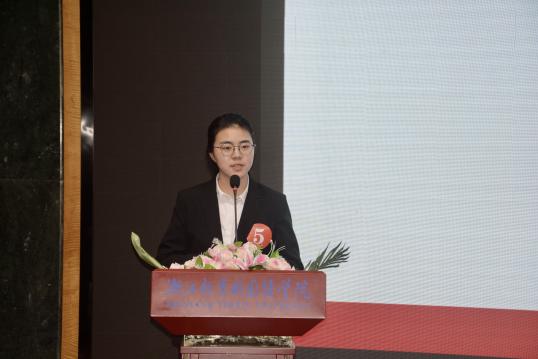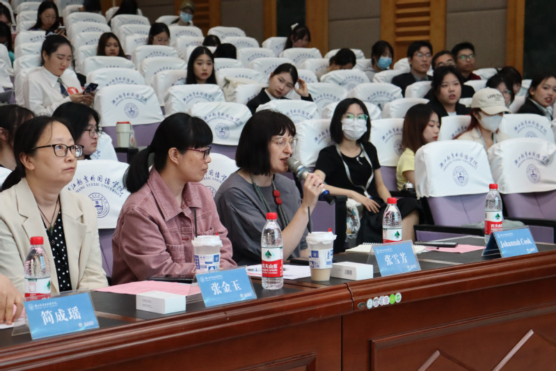 现场比赛结束,Johanna老师作为评委代表总结了此次比赛,表示很享受每一位选手的演讲,很荣幸担任此次口语竞赛的评委。她认为倾听选手回答问题和阐述观点是一种乐趣,同时她看到了同学们出色的英语水平和对学习英语的热情。最后她希望更多的同学参加比赛,展现自己,提升自己的英语口语水平。