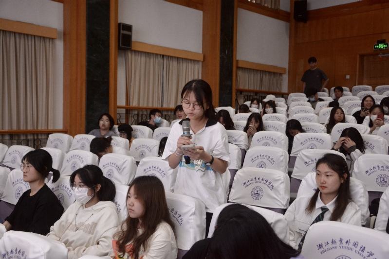 选手比赛结束后,主持人提问观众,观众们踊跃地举手分享了对主题“The Chinese Path to Modernization”的看法,赞同选手们的观点和例子,对选手们的即兴演讲连连称赞,表示只有扎实专业知识,才能迎接未来挑战,每一位台下的观众都收获颇丰。